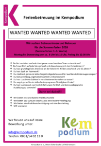 Betreuer/-innen für die Sommerferien 2026 gesucht!